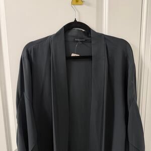 EILEEN FISHER $275 2X SILK OPEN FRONT SIDE SLIT KIMONO BLACK CARDIGAN
