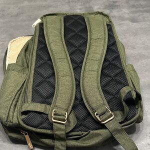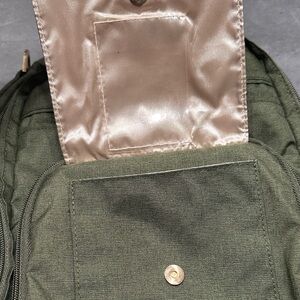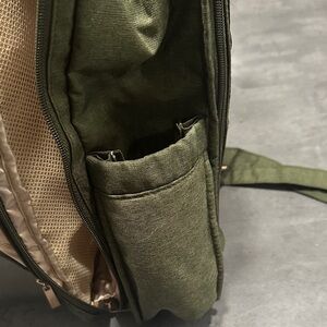 Sleek olive green backpack/diaper bag with gold zippers. Excellent condition. Ideal for daily use. Spacious and stylish.