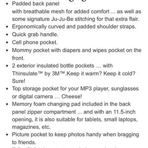 Tons of pockets and compartments. Does not have coin purse or removable changing pad.