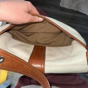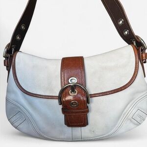 Coach Soho Leather Shoulder Bag White & Brown Flap Buckle Y2K