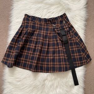 Stylish plaid skirt with buckle pocket. Cargo details. Never worn. Sold out on website. Side hidden zipper. No stretch. Soft, and well constructed.
