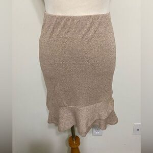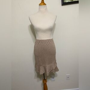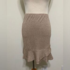 Express Light Tweed Textured Ruffle Peplum Hem Skirt Pull On Stretch Tan Brown Color Women’s Size XS