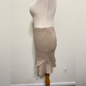 Express Tweed Texture Skirt Ruffle Peplum Hem Pull On Stretch Tan Brown size XS