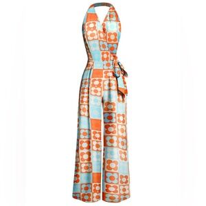 NWT Retro Stage 60s Inspired HALTER COLORBLOCK FLORAL SLEEVELESS JUMPSUIT sz 2XL