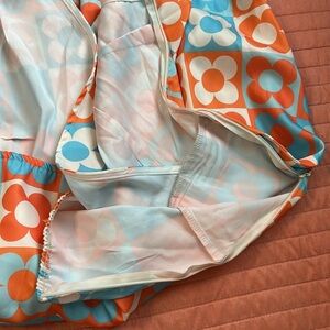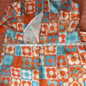 Featuring a striking orange and blue floral pattern, it's perfect for any occasion. Enjoy comfort and elegance in one chic piece.