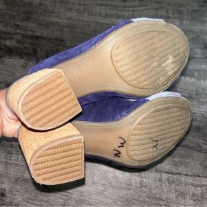 Hush Puppies Blue Suede Mules with Wooden Heel
