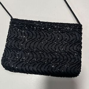 Black Beaded Formal Evening Bag Small Rectangle Crossbody purse Carla Marchi. Shipped with USPS Ground Advantage.