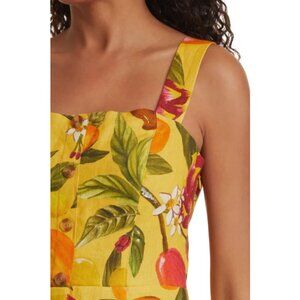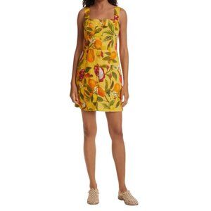 Farm Rio Fruit Lovers Mini Linen Dress Yellow Multicolor Print Size Medium New