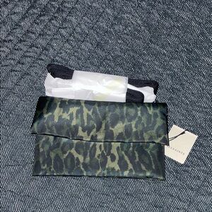 Stylish nylon crossbody bag with a bold green and black leopard pattern. Features an adjustable strap with silver hardware. Perfect for everyday use.