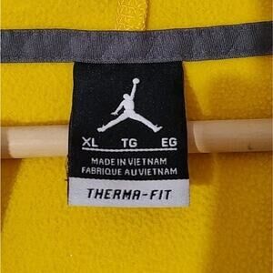 The Men's Nike Michigan Wolverines full-zip Performance Therma Fit Hoodie Jacket in Yellow, size XL, is officially licensed fan apparel for football fans. Featuring the iconic Michigan Wolverines team logo, this jacket is perfect for showing support during the regular season. Made by Nike, a reputable sports brand, this jacket is designed for men who are fans of the team. Perfect for game days or casual wear, this jacket combines style with team spirit.