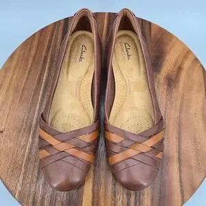 Clarks Flats Women's 8.5M Brown Leather Sara Clover Slip On Career Comfort Shoes
