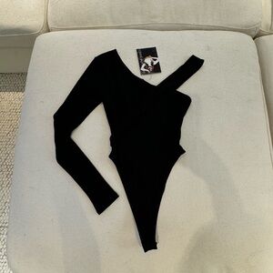 Naked Wardrobe Snatched Cold Shoulder Black Bodysuit - Size Small