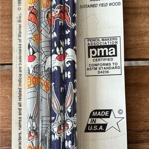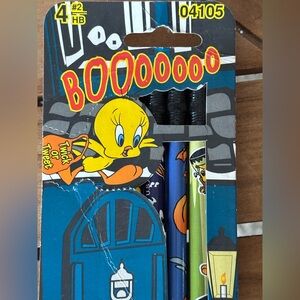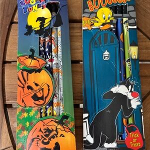 Fun Looney Tunes Halloween pencils with classic character designs decked out for spooky season! This set includes 2 packs of four pencils in original packaging. One package has lost its glue and back plastic slides off if this bothers you. Perfect for fans and collectors. Smoke free. I ship daily.