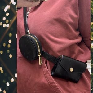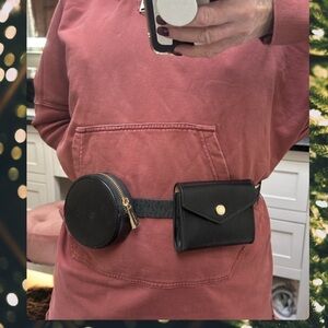 belt Michael Kors Black Double Pouch Fanny Pack Belt Bag NWT