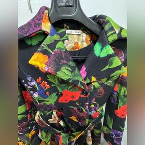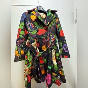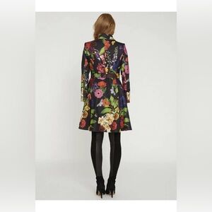 Alice + Olivia Leila Botanical Fit-and-Flare Coat Medium Butterflies Flowers