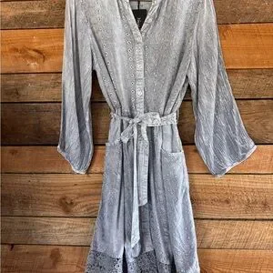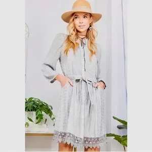 Young Threads Bohemian Baby Doll Button Down Dress in Light Gray Size L NWT