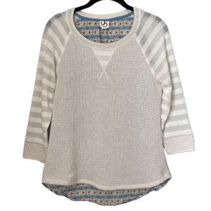 Anthropologie One September Sweater Cream Knit 3/4 Sleeve Blouse Size Small