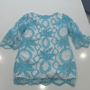Lilly Pulitzer Lottie Aqua Lace Pineapple Romper Size 12