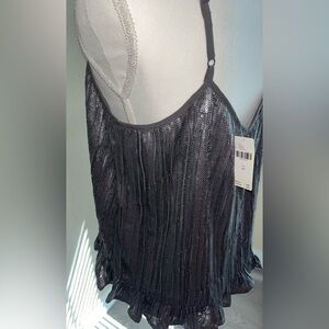 Anthropologie ‘Amelie’ Gunmetal Sequin Ruffle Cami, NWT