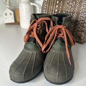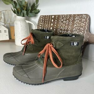 Khombu Olive Green Outdoor Crest Duck Boots with Orange Laces Women's - Size 9