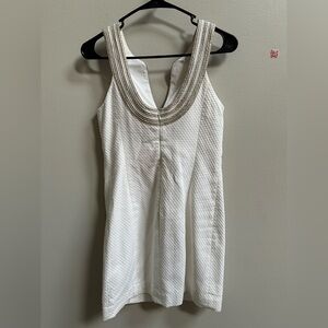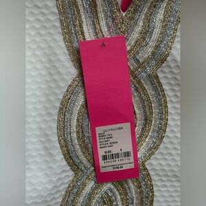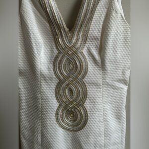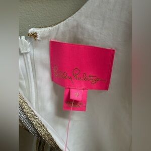 Brand new with tags and never worn. The classic Lilly Pulitzer Valli Shift Dress is an iconic resortwear staple, perfect for summer events, brunches, beach weddings, or vacation nights out. Features a flattering fitted silhouette with a notched front neckline and scoop back, accented by metallic multi-tone Lilly soutache trim. Crisp and lightweight, this sleeveless dress is fully lined and made of 100% cotton for breathable comfort and polished style.