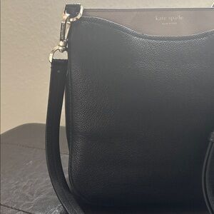 Gold hardware, magnetic closure and adjustable crossbody strap.
