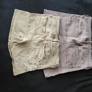 Two pairs of American Eagle Outfitters Midi length jean shorts size 6. Comfortable fit for any casual occasion. Made from durable denim, they provide a classic look that pairs well with any top. Perfect for warm weather, these shorts are a must-have addition to your wardrobe.