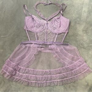 Victoria’s Secret Unicorn Purple Mesh High Neck Wicked Apron Babydoll Size XL
