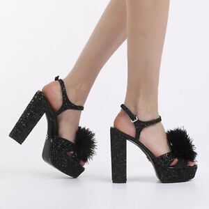 Michael Michael Kors Fara Platform Dress Sandals Black Glitter size 39