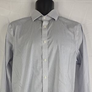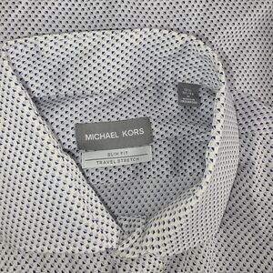 Michael Kors Men's White Blue Patterned Button Down Shirt Size Medium CO-2685