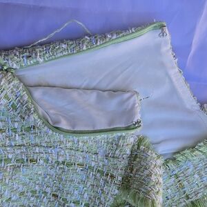 Elegant mint tweed dress by House of Harlow 1960. Ideal for fashionable events.