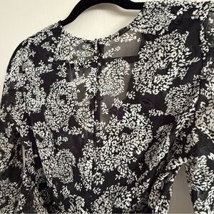 NWT Black and White Printed Floral Long Sleeve Ruffle Romper