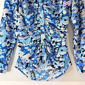 Rails NWOT Lisa Womens Sz S Blue Floral Y2K Feminine Ruching Flattering Top