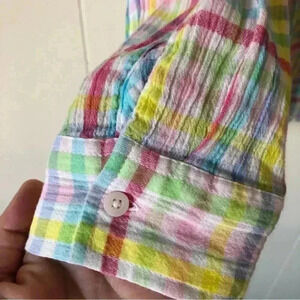 Talbots Lightweight Half Button Closure Plaid Cotton Shirt Size MP
