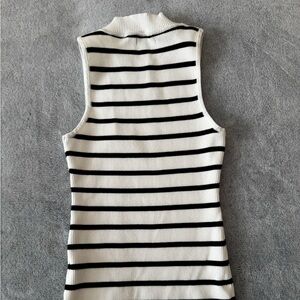 Step out in style with this chic black and white striped sleeveless top. Perfect for casual outings, this top offers a modern and sleek look.