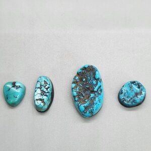 4 Turquoise Awesome Blue w/Black Webbing & Pyrite Arizona Cabochon. 0.2oz total