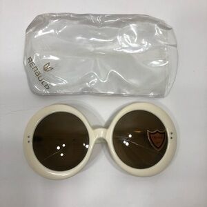 Fab vintage 1960s 1970s Renaud sunglasses have big round tortoiseshell frames and smoke colored lenses.