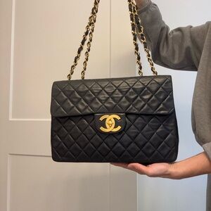 Vintage Chanel Single Flap lambskin maxi gold plated hardware