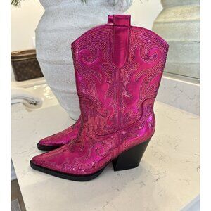AZALEA WANG Merril Western Boot in Fuchsia Size US 10