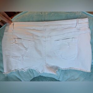 Stylish white distressed denim shorts perfect for casual outings. Features a trendy frayed hem for a chic look and a TON of stretch in all the right places.