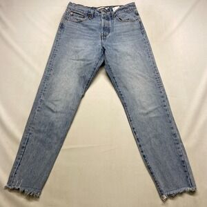 Levi's Wedgie Icon Fit Ankle Jeans Womens 28 Blue Cotton Mid Rise Frayed Hem