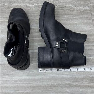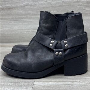 Bongo Black Leather Harness Strap Ankle Moto Boots Womens Size 8