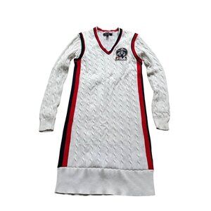 Fila x Brooks Brothers Size M White Cable Knit Preppy V-Neck Sweater Dress