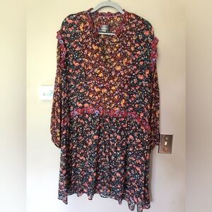 ANTHROPOLOGIE Helen Boho Floral Sheer Tunic Dress Size Medium
