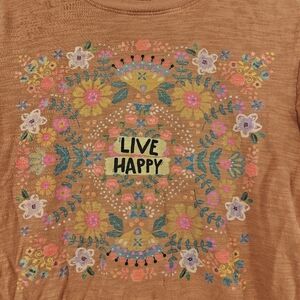 Natural Life Boyfriend Tee Shirt In Orange Boho "Live Happy" Size XS Women's