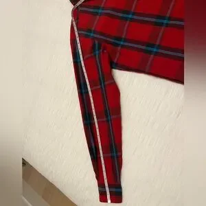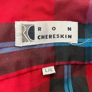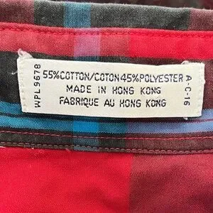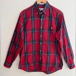 Vintage Ron Chereskin red plaid button front shirt. Button down collar. Made in Hong Kong. 55% cotton/45% polyester.