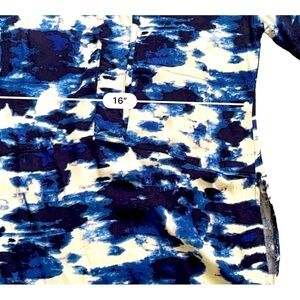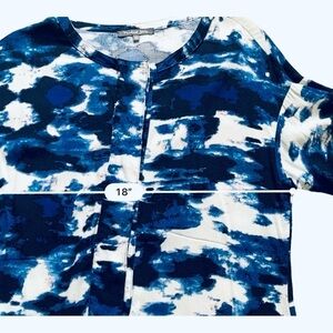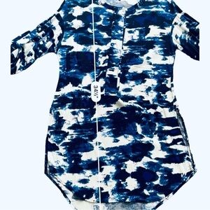 Tunic dress, watercolor pattern, black/dark blue/ white color, split round hem front half snaps closure, 3/4 sleeves with snap, can wear with leggings or as a mini dress