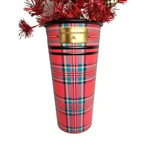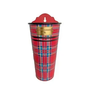 Mackenzie Childs Red Tartan Metal Bucket Wall Vase Holidays Plaid NIB Retired