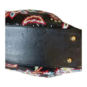 Whiting & Davis metal mesh shoulder bag floral print leather trim multicolor