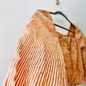 Madewell Puff-Sleeve Button-Front Crop Top in Embroidered Stripe XXS